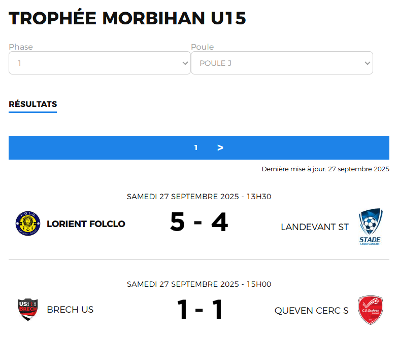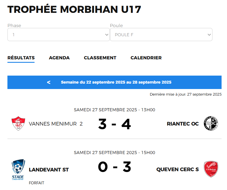 27/09/25 : Résultats de U14 à U17